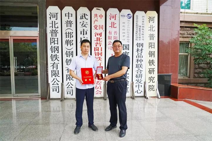 7月17日上午,武安市工會(huì)常務(wù)副主席王啟良領(lǐng)導(dǎo)一行來到普陽鋼鐵,為普陽黨委副書記、總經(jīng)理石躍強(qiáng)頒發(fā)“河北省勞動(dòng)模范”獎(jiǎng)?wù)录皹s譽(yù)證書。公司總經(jīng)理石躍強(qiáng)和辦公室主任楊建軍進(jìn)行了熱情接待。