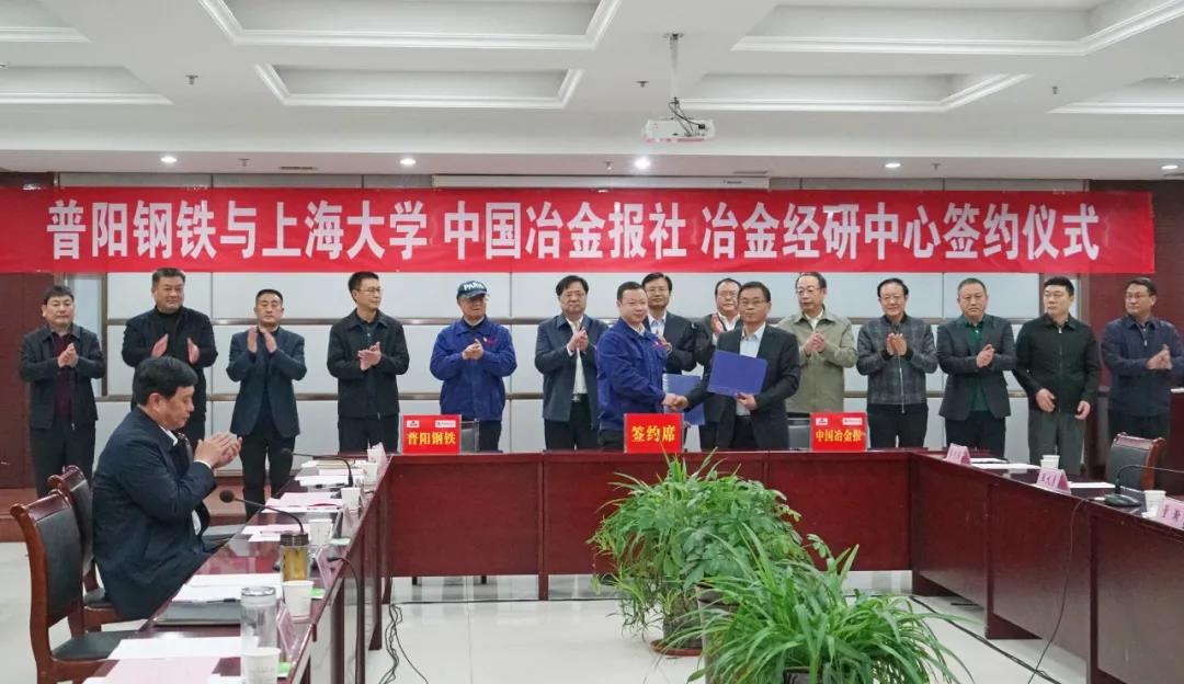 11月19日上午,河北普陽鋼鐵集團與上海大學、中國冶金報社、冶金工業(yè)經濟發(fā)展研究中心戰(zhàn)略合作簽約儀式在文化中心隆重舉行。出席儀式的領導和專家有省委軍民融合辦一級巡視員徐振川、規(guī)劃處副處長王如冰、政策法規(guī)處主任李勇,河北省冶金行業(yè)協(xié)會顧問、河北省政府參事室特約研究員王大勇,國家973項目首席科學家、上海大學材料學院院長董瀚教授,上海大學材料學院副院長韋習成教授,中國鋼鐵工業(yè)協(xié)會副秘書長、中國冶金報社黨委書記、社長陳玉千,中國冶金報社副社長熊余平,冶金工業(yè)經濟發(fā)展研究中心副主任鄭玉春;出席儀式的武安方面領導有市委書記趙洪山,市委常委、常務副市長張國群,市委常委、組織部部長宋懷志,市委常委、秘書長馬曉斌,市委常委、武裝部部長石兵江,市政府副市長賀良,市政協(xié)副主席、應急管理局長王增平;市委辦、政府辦、發(fā)改局、商務局、科工局、環(huán)保分局、自然資源與規(guī)劃局、行政審批局、工業(yè)園區(qū)等部門負責同志也出席了本次簽約儀式。集團黨委書記、董事長郭恩元,副書記、總經理石躍強和副總經理郭龍鑫、王瑞華參加了簽約儀式。