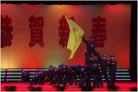 由于在“大舞臺”上演出,主持人增加到了6人,同時參演人數(shù)也創(chuàng)下了歷年來的新高。自編自導的舞蹈《鋼鐵工人》中,16名身穿工作服,頭戴安全帽的演員,以舞蹈的形式再現(xiàn)了鋼鐵工人火紅的勞動場面,體現(xiàn)了我們鋼鐵工人的沖天干勁與如火的激情,贏得了觀眾熱烈的掌聲。