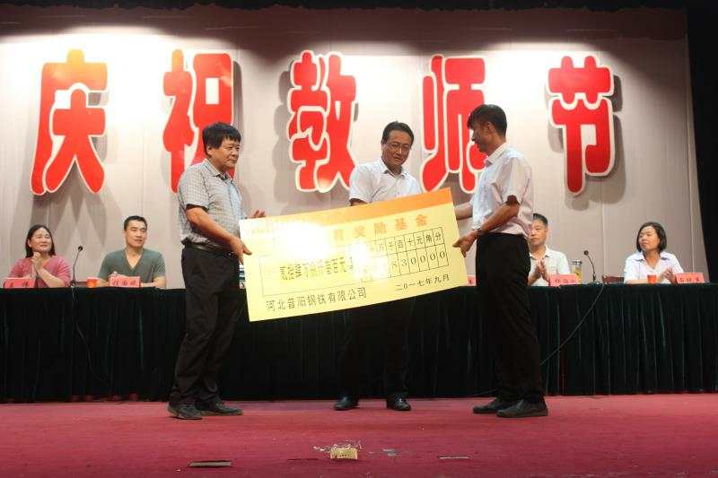 會(huì)上,優(yōu)秀教師代表做了典型發(fā)言,對捐資助教先進(jìn)單位、先進(jìn)個(gè)人及優(yōu)秀教師進(jìn)行的頒獎(jiǎng)。我公司榮獲“捐資助教先進(jìn)單位”,董事長郭恩元榮獲“捐資助教先進(jìn)個(gè)人”??偨?jīng)理助理石現(xiàn)英代表公司為陽邑鎮(zhèn)捐贈(zèng)了教育獎(jiǎng)勵(lì)基金。