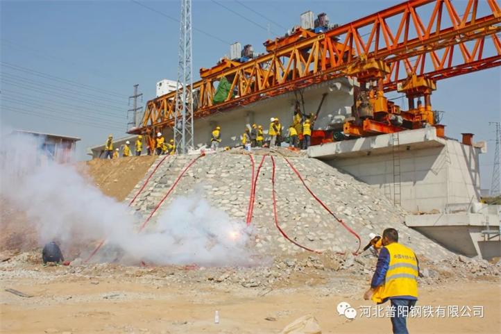 至此,陽邑中橋段橋梁率先架設(shè)成功,這標(biāo)志著普陽鐵路專線橋梁架設(shè)施工正式展開,也為全線鐵軌貫通吹響了“沖鋒號”。