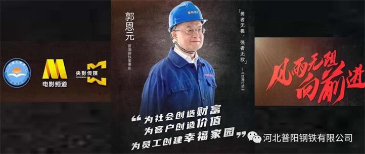 3月6日,河北普陽鋼鐵集團(tuán)(以下簡稱“普陽”)黨委書記、董事長郭恩元走進(jìn)CCTV-6電影頻道,亮相《風(fēng)雨無阻向前進(jìn)》企業(yè)家系列公益短片,為全國戰(zhàn)“疫”勝利加油打氣!郭董用鏗鏘有力的聲音,闡述了自己創(chuàng)業(yè)的初心和使命,并呼吁大家要對中國經(jīng)濟(jì)有信心,對戰(zhàn)勝新冠肺炎疫情有信心,要始終堅(jiān)定“勇者無畏,強(qiáng)者無敵”的必勝信念。