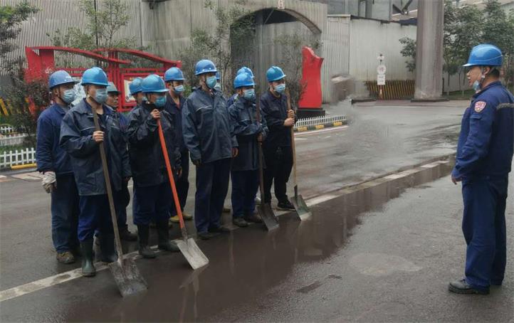 “外邊低洼處積水太多,路面情況不清楚,這進(jìn)進(jìn)出出的汽車、鏟車需要指揮引導(dǎo)!”