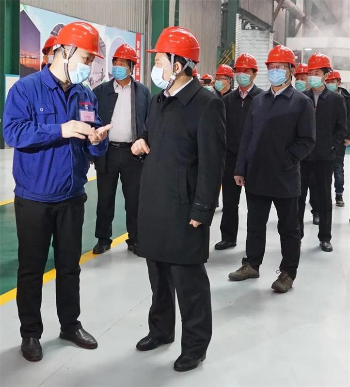 在普陽(yáng)中板廠生產(chǎn)車間,強(qiáng)延峰一行深入現(xiàn)場(chǎng),認(rèn)真檢查疫情防控落實(shí)工作,并詳細(xì)了解生產(chǎn)情況。