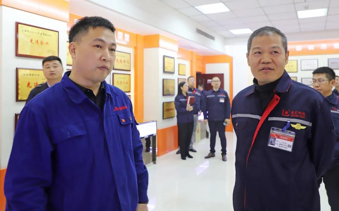 10月26日下午,德龍集團(tuán)董事長(zhǎng)丁立國(guó)、慈弘慈善基金會(huì)理事長(zhǎng)趙靜帶領(lǐng)新天鋼、德龍集團(tuán)高層領(lǐng)導(dǎo)一行19人蒞臨普陽(yáng)對(duì)標(biāo)交流。普陽(yáng)鋼鐵集團(tuán)黨委副書(shū)記、總經(jīng)理石躍強(qiáng),總經(jīng)理助理石現(xiàn)英、人力企劃部部長(zhǎng)高文彩、生產(chǎn)部長(zhǎng)李紅超及財(cái)務(wù)部相關(guān)負(fù)責(zé)同志全程接待。
