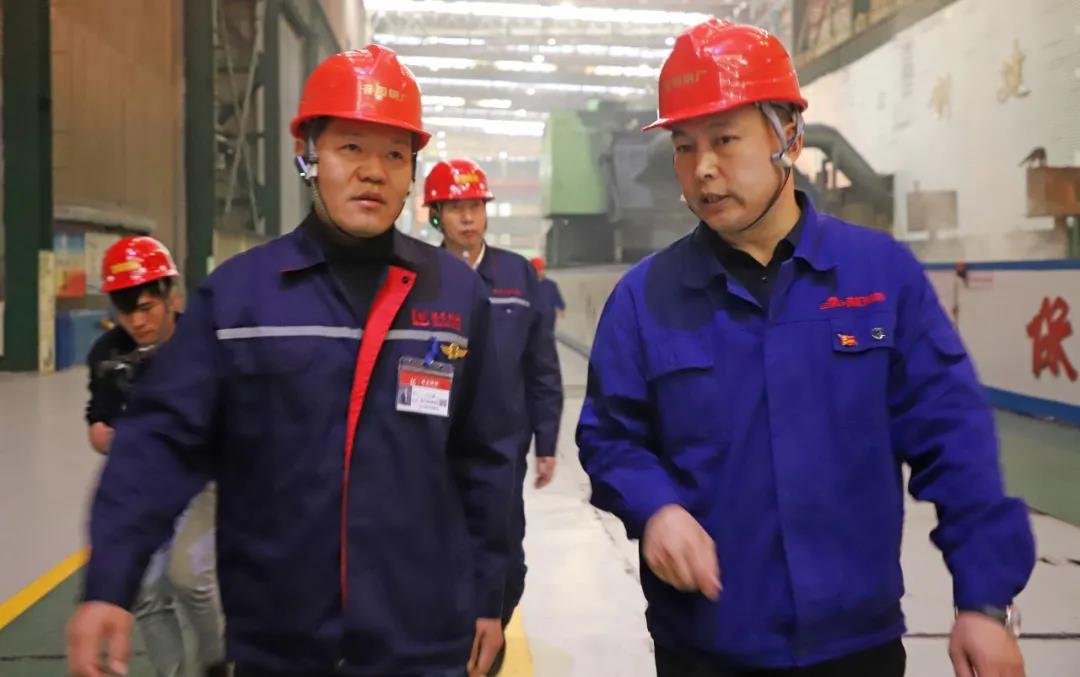 座談結(jié)束后,石總陪同丁董一行參觀(guān)了普陽(yáng)沙盤(pán)模型展、風(fēng)雨四十年廠(chǎng)史展,并到二期中板生產(chǎn)車(chē)間實(shí)地調(diào)研。