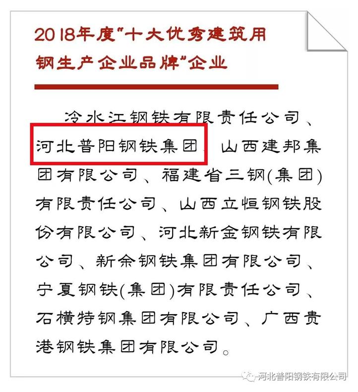 昨日,中國冶金報(bào)社發(fā)布了2018年度“十大優(yōu)秀建筑用鋼生產(chǎn)企業(yè)品牌”,我公司憑借卓越的產(chǎn)品質(zhì)量和廣泛的品牌影響力,榮列十大品牌第2位!這是繼5月9日榮獲 “中國品牌價值”排名第5后,我公司在品牌影響力方面獲得的又一重量級獎項(xiàng)!