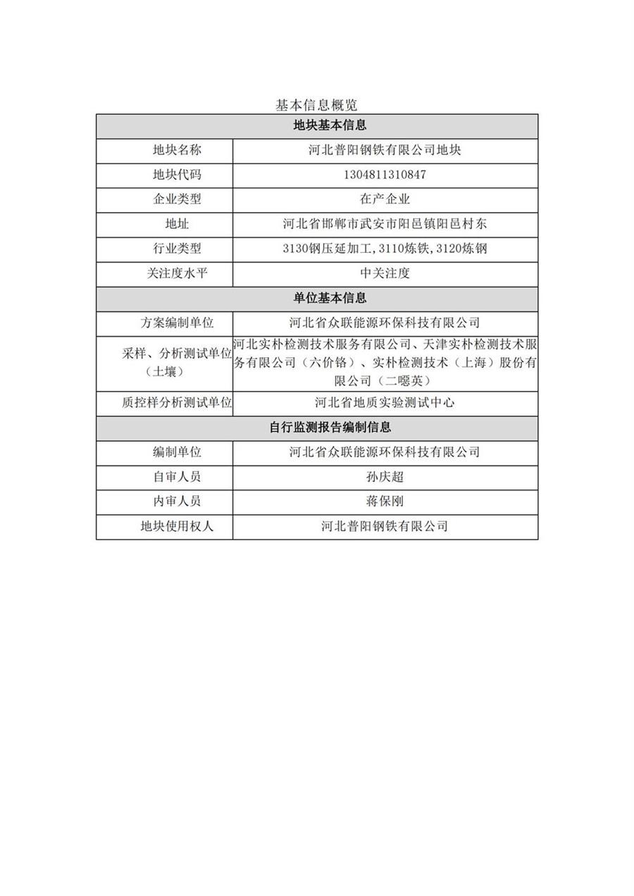 河北普陽鋼鐵有限公司地塊土壤環(huán)境自行監(jiān)測報(bào)告