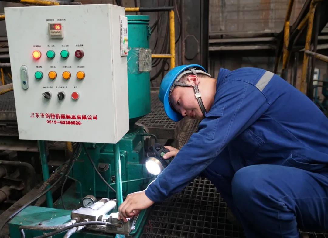 有一次,卷曲段一個控制冷卻水的氣動蝶閥總是頻繁故障,不是打開關(guān)不住,就是關(guān)住打不開。經(jīng)拆檢,發(fā)現(xiàn)是蝶閥軸桿斷裂所致,郭超便琢磨是什么導(dǎo)致軸桿斷裂的。于是,他站在閥門跟前仔細觀察閥門的每一次開關(guān)的過程。他發(fā)現(xiàn)由于閥門關(guān)閉速度過快,產(chǎn)生的“水錘”沖擊,作用于閥體對閥門的損害很大,可能是軸桿斷裂的原因,找到問題的關(guān)鍵點后,郭超便開始尋找如何讓閥門實現(xiàn)“快開慢關(guān)”這一動作來消除“水錘”現(xiàn)象。終于,當他看到自動打包機(氣動控制)機頭在接近熱卷速度能夠突然變慢時,他知道自己找到了讓閥門關(guān)閉速度變慢的方法。最后,他把同樣的氣動控制原理運用到冷卻水的氣動蝶閥上,通過改變氣道,減緩排氣速度,達到了預(yù)期效果,很好地避免了該閥門的頻繁損壞。“這次小技改,讓我深刻地認識到,創(chuàng)新不是憑空想象,它離不開對現(xiàn)有工藝設(shè)備的深入了解以及對先進技術(shù)的靈活運用,其實,很多創(chuàng)新都是建立在原有技術(shù)之上的‘老壺裝新酒’”關(guān)于創(chuàng)新,郭超如是說道。