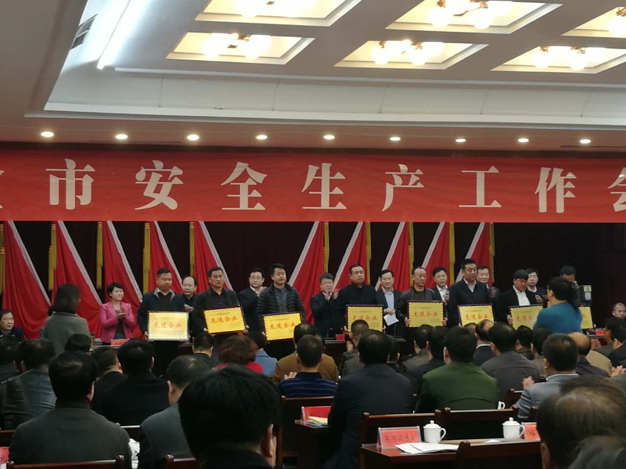 3月6日,武安市市委、人民政府,在武安賓館第二會(huì)議室,召開(kāi)2016年度安全生產(chǎn)工作優(yōu)秀單位、先進(jìn)集體、先進(jìn)企業(yè)和先進(jìn)工作者表彰大會(huì)。市領(lǐng)導(dǎo)魏雪生、強(qiáng)延峰、麻增禮、高守剛、霍俊勇、王清龍、王建霞、郭全生在主席臺(tái)就座,會(huì)議規(guī)格之高,屬歷年來(lái)首次。會(huì)議共評(píng)選出安全生產(chǎn)先進(jìn)集體49個(gè)、安全生產(chǎn)先進(jìn)企業(yè)31個(gè)、先進(jìn)工作者163名。我公司被評(píng)為“安全生產(chǎn)先進(jìn)企業(yè)”。公司副總經(jīng)理李成安作為企業(yè)代表上臺(tái)接受了市委書(shū)記魏雪生的頒獎(jiǎng)。