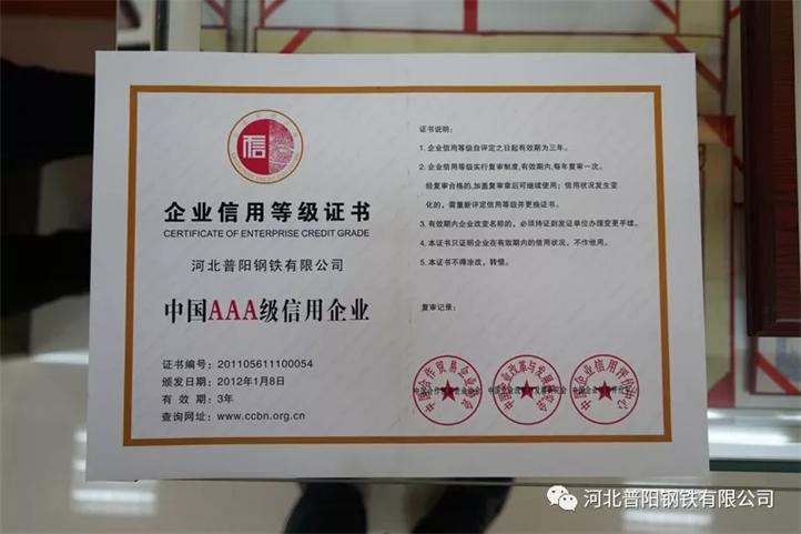 多年來(lái),普陽(yáng)以誠(chéng)鑄品牌,以信得民意。在誠(chéng)信方面,自2013年起,公司連續(xù)五年被評(píng)為“河北省誠(chéng)信企業(yè)”。在質(zhì)量信用方面,連續(xù)三年被評(píng)為“中國(guó)AAA級(jí)信用企業(yè)”。