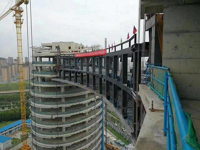 8月18日16時(shí)許,經(jīng)過(guò)近10個(gè)小時(shí)的奮戰(zhàn),鄭州興港大廈鋼結(jié)構(gòu)連廊成功對(duì)接。鋼結(jié)構(gòu)連廊軸線跨度78米,高度為68米,總重達(dá)618噸。這是目前河南省內(nèi)在建項(xiàng)目中跨度最大、高度最高、重量最重的鋼結(jié)構(gòu)工程。