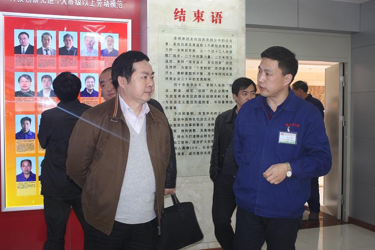 3月25日,江蘇沙鋼集團董事局總裁龔盛率領沙鋼集團有限公司副總經理王科、集團安陽永興公司董事長李增偉、集團董事局生產部部長顧黎榮、集團有限公司資源環(huán)保處長張新等15人到我公司參觀、對標。公司總經理石躍強、總經理助理石現(xiàn)英、副總經理李成安及相關單位負責人在三樓會議室與龔總一行進行了會談。圖為公司總經理石躍強陪同龔總參觀文化中心時的照片。