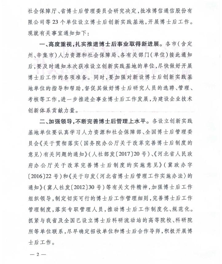 近日,根據(jù)《河北省人力資源和社會(huì)保障廳、河北省博士后工作管理委員會(huì)【2019】311號(hào)》文件公示,全省共有23家單位獲批設(shè)立博士后創(chuàng)新實(shí)踐基地,其中河北普陽鋼鐵有限公司榜上有名,是邯鄲市今年唯一入選的鋼鐵企業(yè)。