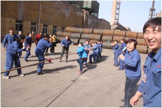 2013年“五一”前夕,質(zhì)管部在新區(qū)高線(xiàn)場(chǎng)地舉行了女子拔河比賽。質(zhì)管部部長(zhǎng)王巧林(右二)到場(chǎng)為大家加油助威。