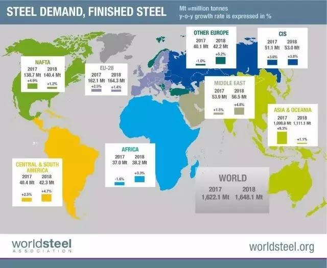 世界鋼鐵協(xié)會市場研究委員會主席T.V.Narendran在談及預(yù)測結(jié)果時指出:“今年,全球鋼鐵市場持續(xù)向好,周期性回升力度持續(xù)加強使得發(fā)達經(jīng)濟體和發(fā)展中經(jīng)濟體的鋼鐵市場表現(xiàn)好于預(yù)期,而中東北非地區(qū)和土耳其的鋼鐵市場依舊較為疲軟。世界鋼鐵協(xié)會指出,2018年,中國鋼鐵需求增長勢頭趨緩,經(jīng)濟結(jié)構(gòu)調(diào)整繼續(xù)深化及出臺更為嚴(yán)厲的環(huán)保措施將遏制對鋼鐵的需求,據(jù)預(yù)測,2018年中國的鋼鐵需求同比難以出現(xiàn)增長。
